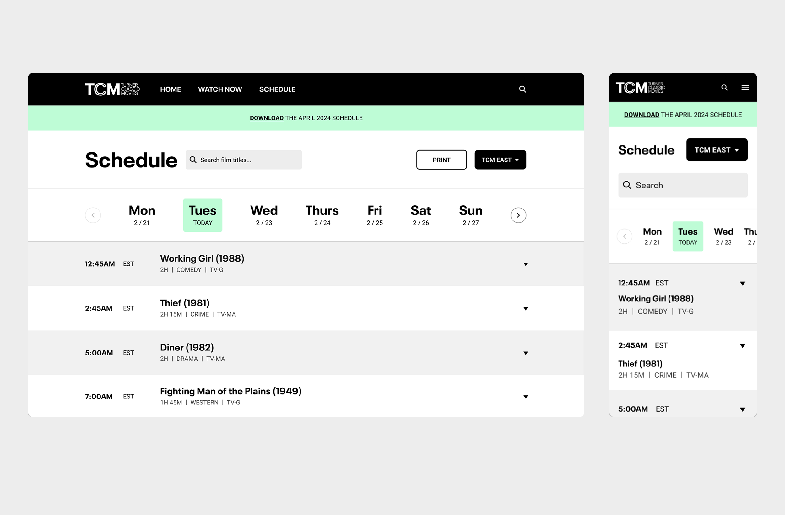 Aligned the Schedule visually with TCM’s refreshed brand identity.