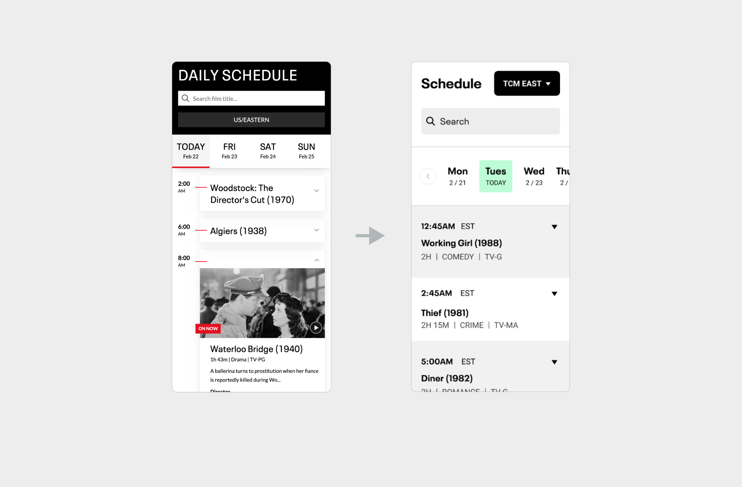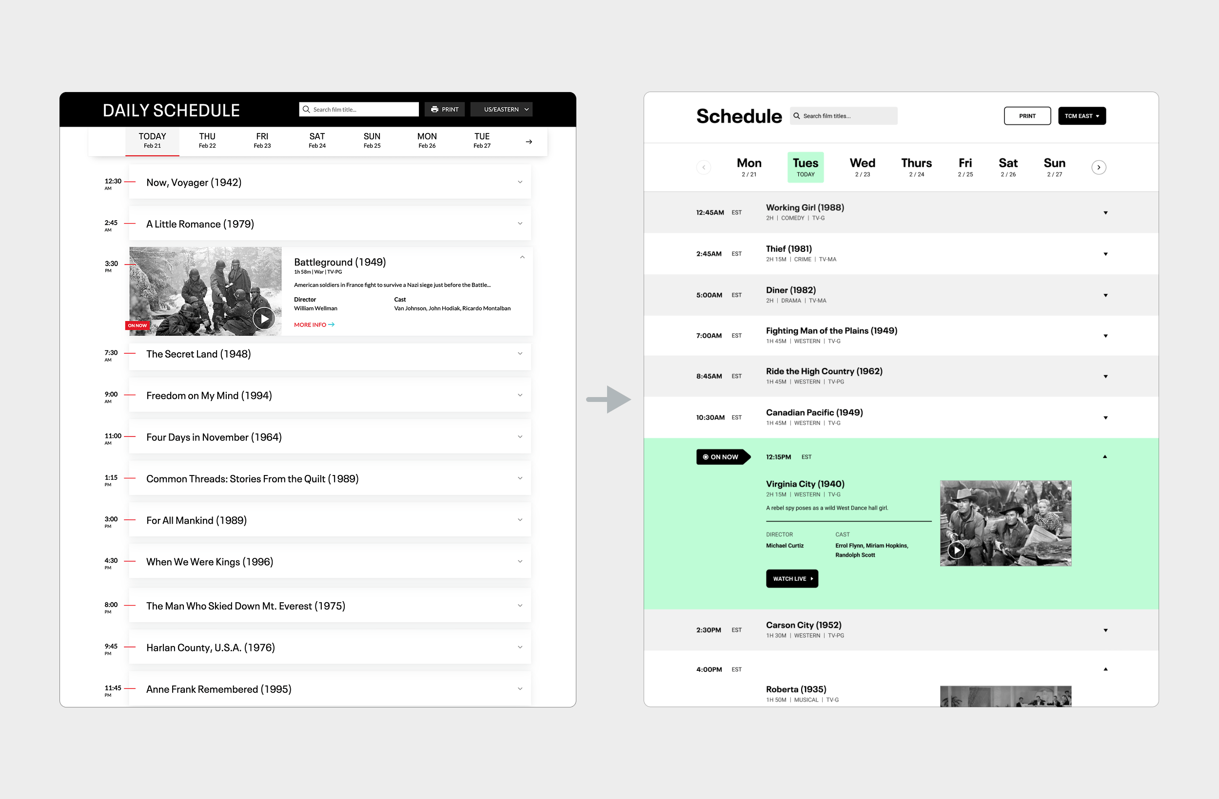 The Schedule’s interface was visually outdated and didn’t reflect TCM’s refreshed brand.